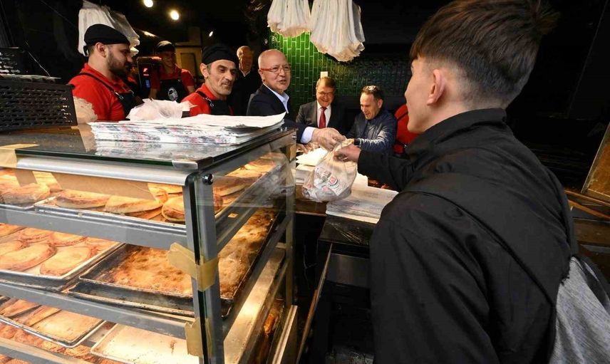 Programın ardından Bursa Esnaf ve Sanatkârlar Odaları Birliği Başkanı Fahrettin Bilgit ile birlikte iş yeri ziyaretleri yapan Gürkan, tezgâhın başına geçerek vatandaşlara simit ve tahinli pide ikram etti.