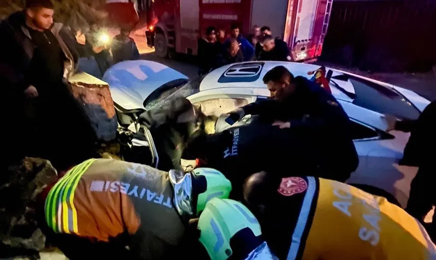 Sürücünün direksiyon hakimiyetini kaybetmesiyle gerçekleşen olayda, araç içinde sıkışan 2 kişi itfaiye ekiplerinin müdahalesiyle kurtarıldı.
