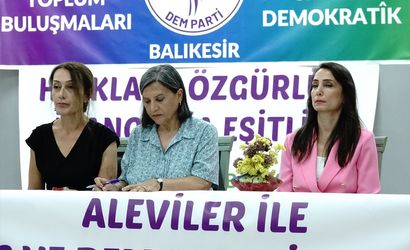 DEM Parti Eş Genel Başkanı Tülay Hatimoğulları, Balıkesir'in Edremit ilçesi Altonoluk Mahallesi'nde "Barış ve Demokratik Toplum Buluşması" toplantısına katıldı.