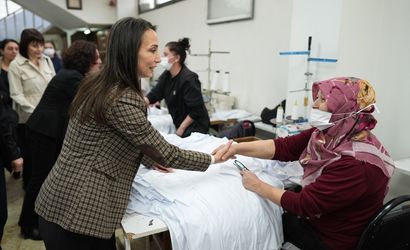 DEM Parti Eş Genel Başkanı Tülay Hatimoğulları (sol 3), 1 Mayıs Emek ve Dayanışma Günü kapsamında, İstanbul'daki bir tekstil atölyesini ziyaret etti. Zeytinburnu'ndaki tekstil atölyesi ziyaretinde, Hatimoğulları'na, parti yetkilileri de eşlik etti.