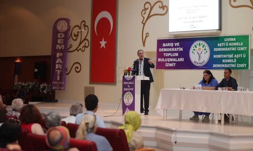DEM Parti Eş Genel Başkanı Tuncer Bakırhan, Kocaeli'nin İzmit ilçesinde "Barış ve Demokratik Toplum Buluşmaları" toplantısına katıldı. Bakırhan, Yunus Emre Kültür Merkezi'nde düzenlenen toplantıda konuşma yaptı.