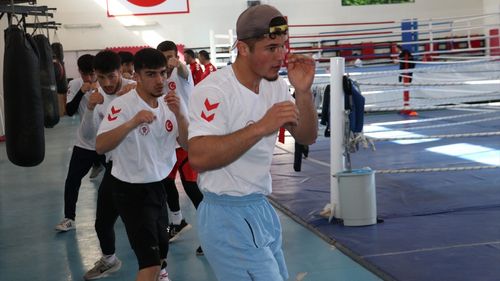 Adana'nın Sarıçam ilçesinde yaşayan milli boksör Oğuzhan Hükümdar, demir döverek güç kazanıyor ve dünya şampiyonu olmayı hedefliyor.