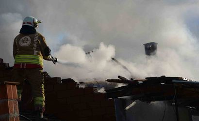 Manisa'nın Demirci ilçesine bağlı Güveli Mahallesi'nde, Osman Kahraman'a ait evde henüz belirlenemeyen bir nedenle yangın çıktı. Evin çatısından yükselen duman kısa sürede alevlendi ve yangın büyüdü.