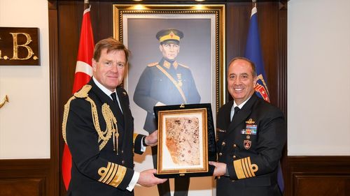 Deniz Kuvvetleri Komutanı Oramiral Tatlıoğlu, İngiltere Deniz Kuvvetleri Komutanı Oramiral Key ile 22 Nisan 2025'te bir araya geldi.