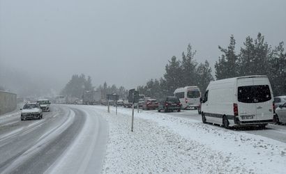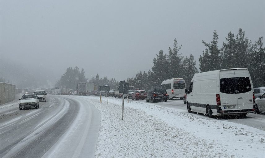 Denizli'de etkili olan kar yağışı nedeniyle Denizli-Antalya kara yolunun Antalya yönünde ulaşım sağlanamıyor.