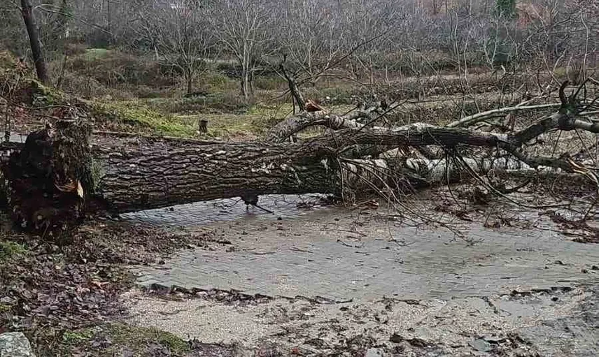 Devrilen asırlık ağacın 1 metre çaplı dev gövdesi caddede ulaşımı engelledi. Söz konusu gövde parçalanarak bölgeden kaldırıldı.