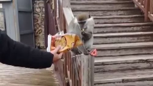 Denizli'de ormanda görülen firari maymun, DKMP ekiplerinin aramalarına rağmen Seyir Tepesi'nde vatandaşlar tarafından görüntülendi; bazılarına yiyecek verildi.