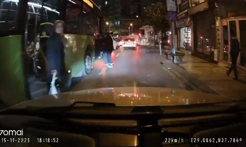 Araç kamerasına yansıyan anlarda, otobüs sürücüsünün durağa yanaşmaması ve yol ortasında yolcu alıp vermesi net biçimde kayıt altına alındı. Otomobil sürücüsünün refleksi sayesinde inmekte olan yolcu ile otomobil arasında çarpışma meydana gelmedi.