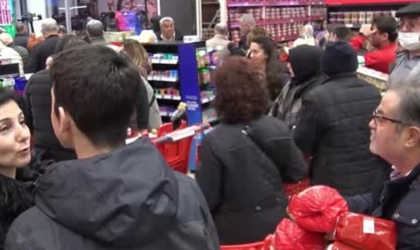 Vatandaşların aktardığına göre gece yarısından itibaren market önünde beklemeye başlayanlar, bazılarının 9 saate yakın kuyrukta beklediğini belirtti. Kurdele kesiminin ardından başlayan yoğunluk, mağaza içinde özellikle teknoloji, et, kuru gıda, mutfak ve şarküteri bölümlerinde belirginleşti; zaman zaman alışveriş yapmak güçleşti.