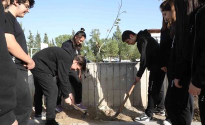 Denizli'de öğrenciler iklim değişikliğine dikkat çekti: Durmuş Ali Çoban Anadolu Lisesi'nde fidan dikimi