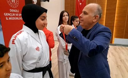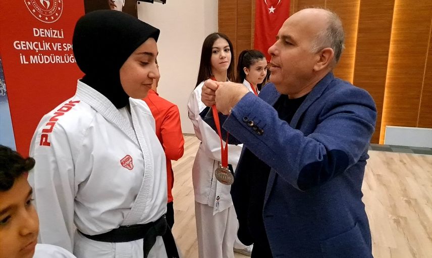 Denizli'de gerçekleştirilen etkinlikte, karate eğitimi alan öğrenciler, kadına yönelik şiddete dikkat çekmek amacıyla gösteri gerçekleştirdi. Kredi ve Yurtlar Kurumu Pamukkale Yurdu Konferans Salonu'nda düzenlenen törende, ilk ve orta öğretimden 170 öğrenci kemer ve diploma belgelerini aldı.