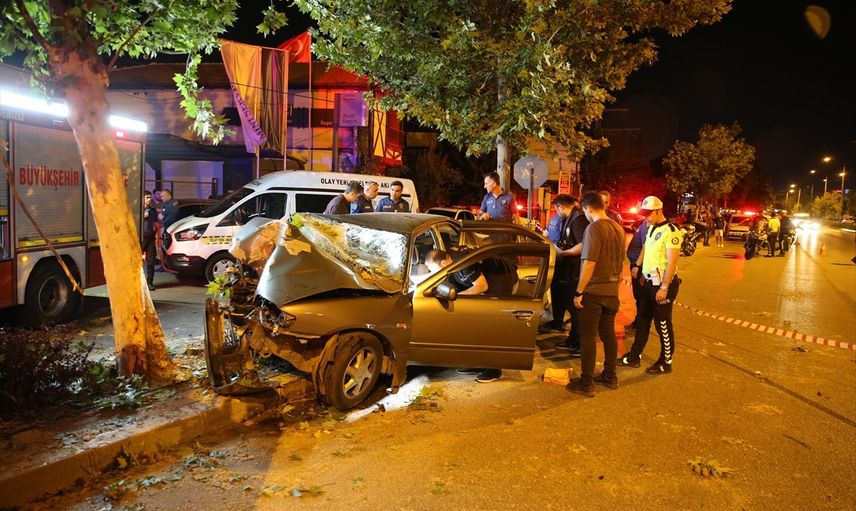 Denizli'de refüjdeki ağaca çarpan otomobilde 2 kişi hayatını kaybetti, sürücü ağır yaralı