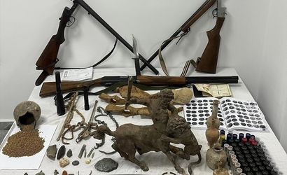 Yapılan aramalarda, şüphelilerin evlerinde çok sayıda antik eser bulundu. Ele geçirilenler arasında Bizans dönemine ait bir testi, 4 sikke, 6 tarım aleti, 2 terazi, Tunç Çağı'na ait 2 testi, Roma dönemine ait bir gözyaşı şişesi, 8 süs eşyası, 3 kandil, bir dedektör, 3 av tüfeği ve toplamda 70 av tüfeği fişeği yer aldı.