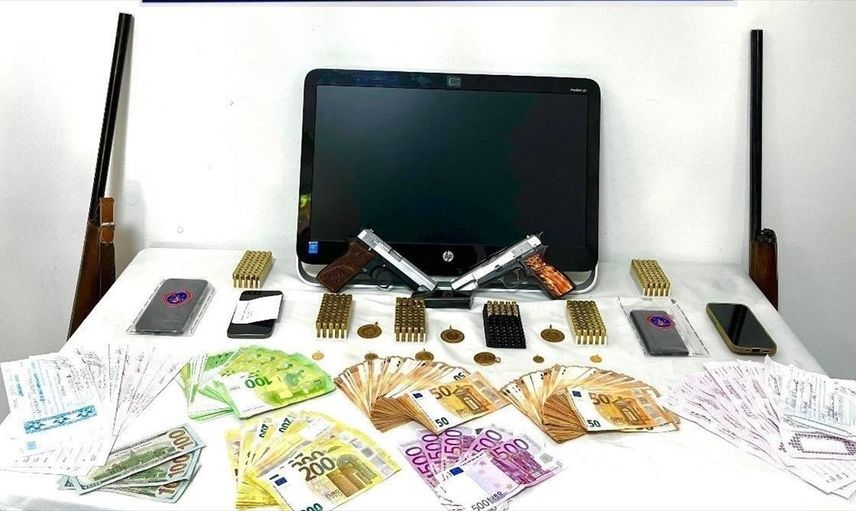 Aramalarda ele geçirilenler arasında 15 milyon liralık 12 senet, 37 bin 500 avro, 3 bin 250 dolar, 9 Cumhuriyet altını, 149 boş senet, 4 doküman, 2 ruhsatsız tabanca, 2 ruhsatsız av tüfeği, 443 tabanca fişeği ve 4 cep telefonu bulundu.