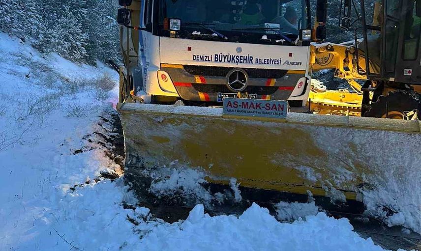 Denizli'de yüksek kesimlerde karla mücadele sürüyor