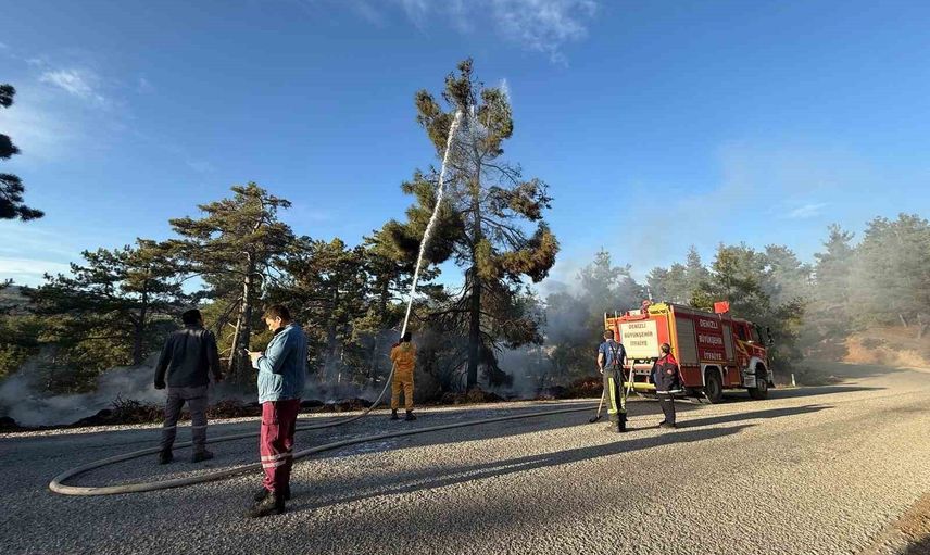 DENİZLİ’DE ORMANLIK ALANDA ÇIKAN YANGINI GÖREN BİR VATANDAŞ, YANGININ BÜYÜMEMESİ İÇİN BASINÇLI SU POMPASI İLE SÜTLE İLK MÜDAHALELERDE BULUNDU. YANGIN KISA SÜREDE KONTROL ALTINA ALINDI.