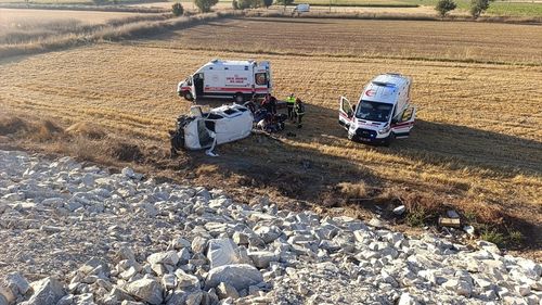 Denizli Tavas'ta hafif ticari aracın devrilmesi: Aynı aileden 6 kişi yaralandı