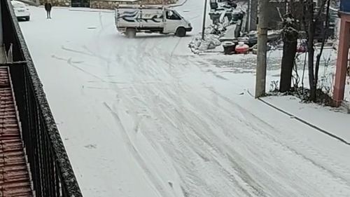 Denizli'nin Pamukkale ilçesi Uzunpınar Mahallesi'nde kar sonrası buzlanan yolda bir kamyonetin kontrolü kaybedip döndüğü ve kazasız durduğu anlar görüntülendi.