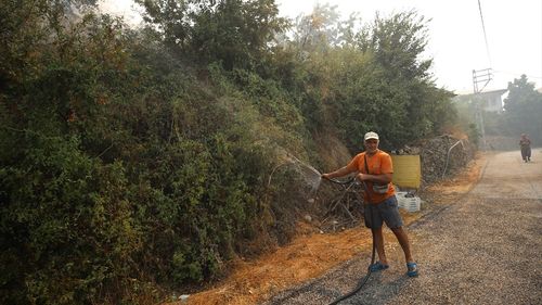 Depremzede Malatyalı çift, Alanya'daki orman yangınında ekiplerle birlikte evleri koruyor