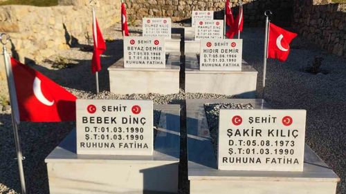Hakkari Derecik Anadağ Mamraş'ta 1 Mart 1990'de yaşamını yitiren 8 şehidin mezarları, Kurmay Yarbay Kıvanç Köseoğlu'nun öncülüğünde yeniden yapıldı.