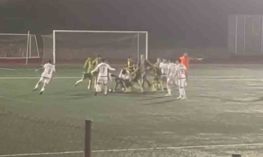 Sözlü tartışma kısa sürede büyüyerek fiziksel çatışmaya dönüştü. Sahada yer alan futbolcular, birbirlerine tekme ve yumruklarla saldırdı; bu durum maçın akışını etkiledi.