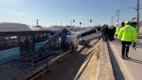Kocaeli Derince'de park halindeki 41 P 9952 plakalı minibüs geri manevra sonucu istinat duvarından düşüp D-100 kenarında asılı kaldı; yaralanma yok.
