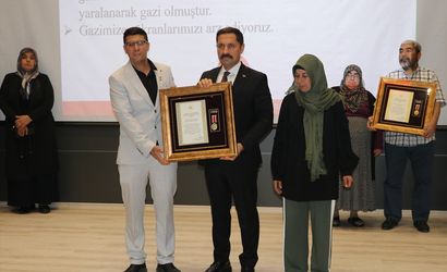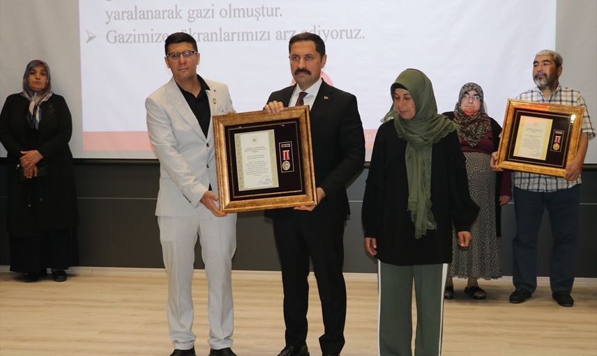 Hatay'da şehit yakınları ve gazilere törenle Devlet Övünç Madalyası ve Beratı takdim edildi.