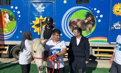 Pony Club tırını ziyaret eden çocuklar, pony atlara binmenin keyfini yaşadı ve alanda hoş vakit geçirdi. Pony atlar kısa sürede çocukların ilgi odağı haline geldi.