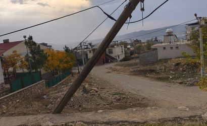 Diyarbakır'ın Dicle ilçesinde, 15 Temmuz Mahallesi Ferah Caddesi'nde yer alan ve internet kablolarının bağlı olduğu ağaç direğin eğik halde bulunması bölge sakinlerinin dikkatini çekti.