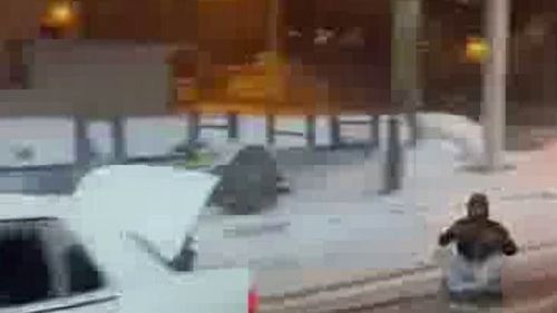 Diyarbakır'ın Dicle ilçesinde bir genç, otomobilin arkasına bağladığı lastikle karda kaydı; arkadaşı bagaja oturarak anları kayda aldı ve kartoplarıyla karşılaştı.