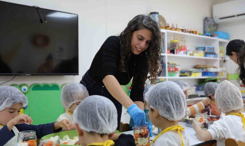 Etkinlik süresince çocuklar, öğretmenlerinin rehberliğinde malzemeleri tanıdı, kavanozları doldurdu ve turşu yapımının her aşamasına aktif olarak katıldı. Bu süreç çocukların el becerilerinin gelişimini desteklerken merak duygusunu canlı tutmayı hedefledi.