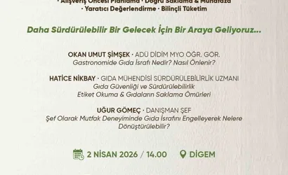 Didim Belediyesi, gıda israfına dikkat çekmek ve sürdürülebilir bir gelecek için toplumsal farkındalık oluşturmak amacıyla "Geleceğe Bir Tabak Bırak" adlı paneli düzenliyor. Etkinlikte alanında uzman isimler, bilinçli tüketim ve mutfakta israfı önleme konularında kapsamlı bilgiler paylaşacak.