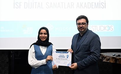 Sanayi ve Teknoloji Bakanlığı Ankara Kalkınma Ajansı desteği ve İSF Studios işbirliğinde yürütülen "Dijital Sanat Akademisi" projesi kapsamında 49 kursiyer sertifika aldı. Ankara Kalkınma Ajansı Genel Sekreteri Duhan Kalkan (sağda), kursiyerlere sertifikalarını verdi.