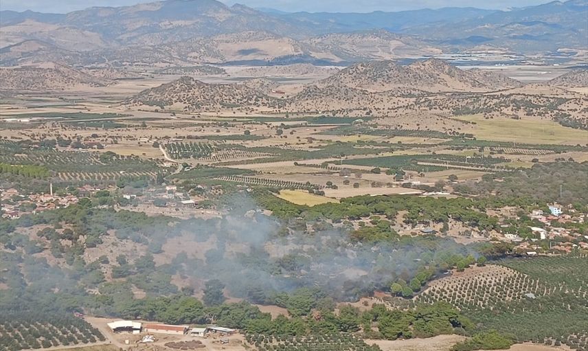 İzmir'in Dikili ilçesinde tarım arazisinde çıkan ve ormana sıçrayan yangına havadan ve karadan müdahale ediliyor. Bölgeye İzmir Orman Bölge Müdürlüğüne ait 4 uçak, 1 helikopter, 14 arazöz, 4 su ikmal aracı, 1 dozer ve 1 yer ekibi sevk edildi.