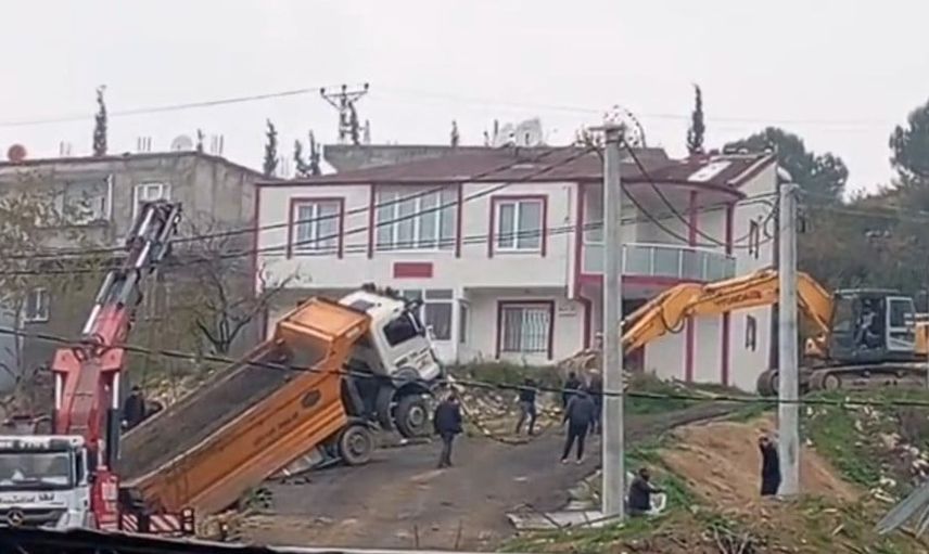 Yaralanma olmadığı bildirilen olayda, kamyonun bulunduğu yerden güvenli şekilde çıkarılması için bölgeye vinç ve kepçe sevk edildi. Kurtarma ekiplerinin koordineli çalışmasıyla araç, askıda kaldığı noktadan çekilerek kurtarıldı.