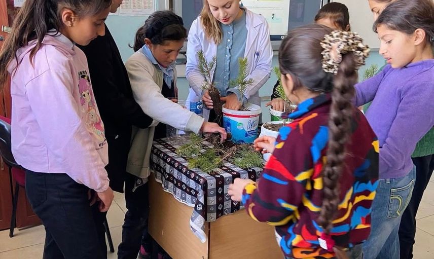 Ağrı'nın Diyadin ilçesindeki Hacıhalit İlk ve Ortaokulu'nda düzenlenen fidan dikimi etkinliğinde öğrenciler, öğretmenleriyle birlikte okul bahçesinde fidanları toprakla buluşturdu. Etkinlik, öğrencilere doğa sevgisi kazandırmayı ve çevreye karşı farkındalık oluşturmayı amaçladı.