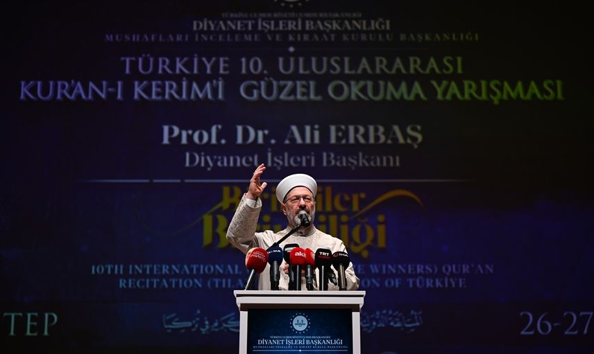 Diyanet İşleri Başkanı Ali Erbaş, Gaziantep'teki Şahinbey Kongre ve Kültür Merkezi'nde düzenlenen Uluslararası Kur'an-ı Kerim'i Güzel Okuma Yarışması'na katıldı. Yarışmanın 10'uncusu kapsamında yaptığı konuşmada, İslam ümmetinin geçmişte Kur'an-ı Kerim'e sarıldığı dönemlerde nasıl yüceldiğini vurguladı.