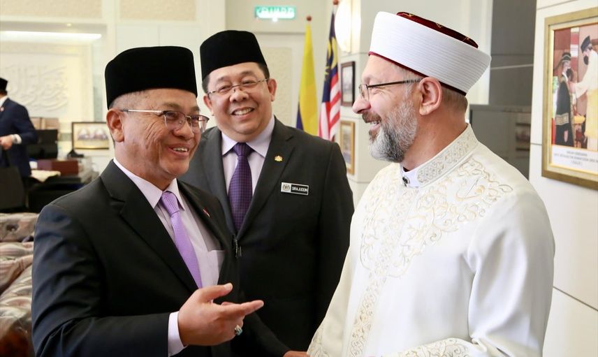 Cumhurbaşkanı Erdoğan'a resmi temaslarda bulunmak üzere gerçekleştirdiği Malezya ziyaretinde eşlik eden Diyanet İşleri Başkanı Ali Erbaş (sağ 2), Malezya Din İşleri Bakanı Dato' Setia Naim (sol 2) ile görüştü.