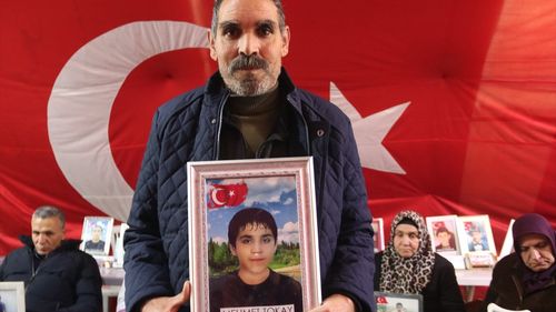 Diyarbakır'da terör örgütü PKK tarafından kaçırılan çocuklarına kavuşmak isteyen anneler, eski HDP il binası önünde oturma eylemine devam ediyor. 3 Eylül 2019'da başlatılan bu eylem, bu hafta itibarıyla 1938'inci gününe ulaşmış durumda. Anne Aydan Arslan, kızına seslenerek, "Eğer bizi duyuyor…