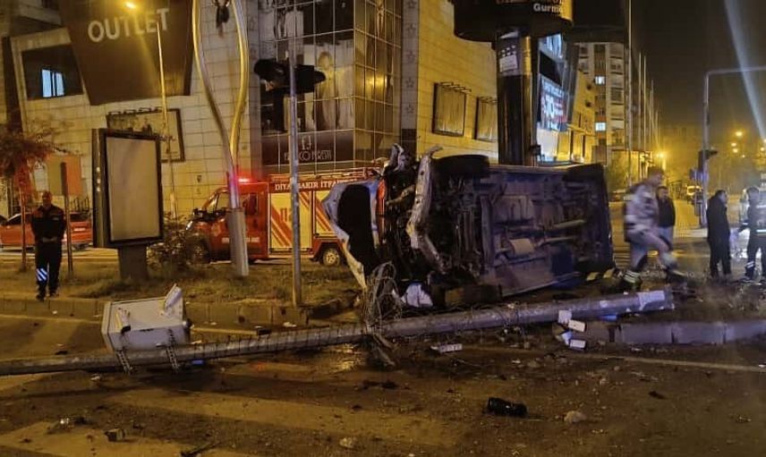 Diyarbakır’ın Bağlar ilçesinde meydana gelen kazada, Mevlana Halit Mahallesi Aydın Arslan Bulvarı’nda sürücüsünün direksiyon hakimiyetini kaybettiği minibüs kavşakta devrildi.