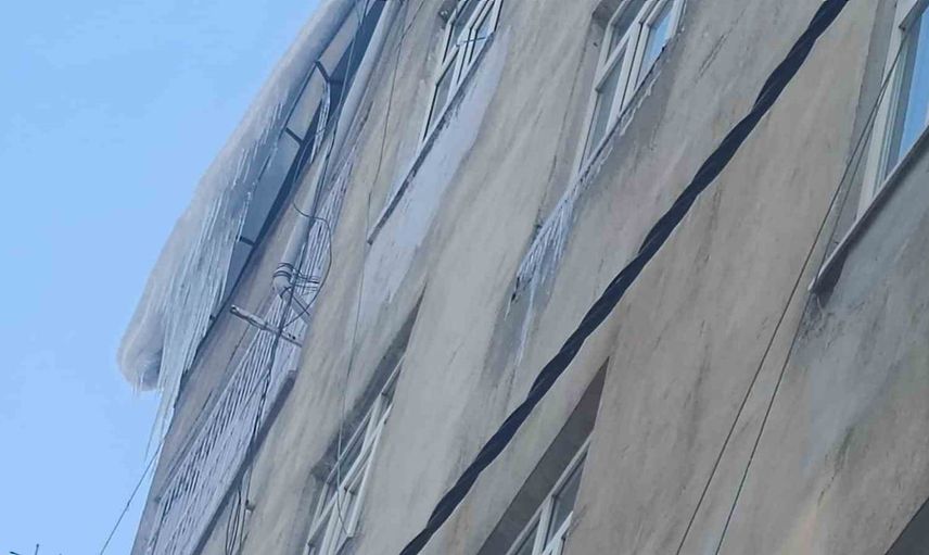 Olay, çevredeki sakinlerin dikkatini çekti; buz sarkıtlarının bulunduğu alanın güvenliğinin sağlanması için önlem alınmasının önemine işaret ediliyor.