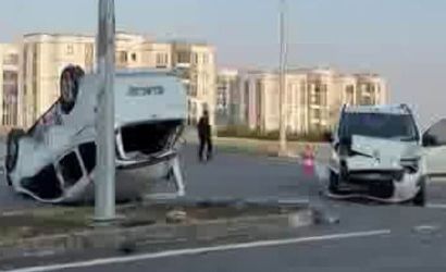 Çarpışmanın etkisi: Çarpmanın etkisiyle araçlardan biri ters döndü. Kazada 2 kişi yaralandı.