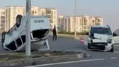 Diyarbakır Bağlar Oğlaklı Mahallesi'nde iki hafif ticari araç çarpıştı: biri ters döndü, 2 yaralı