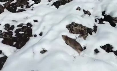 Diyarbakır Çermik'te karlı dağlık alanda yiyecek arayan kurt dronla görüntülendi