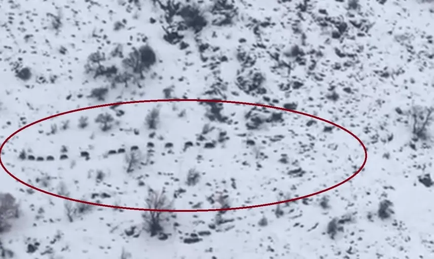 Bölgede yol açma çalışması yapan iş makinası operatörü Cuma Çelik, sürü halinde olan domuzları cep telefonuyla kayıt altına aldı.