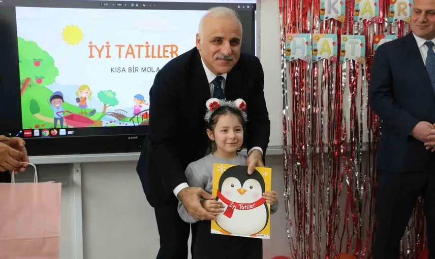 Bir diğer 1’inci sınıf öğrencisi Elif Kaya ise, "Tatilde okumalarımı yapacağım birazda dinleneceğim. Arkadaşlarımı özleyeceğim. Vali bize hediyeler verdi" dedi.