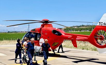 Diyarbakır'ın Lice ilçesinde sağ el bileği tendonu kesilen kişi, ambulans helikopterle hastaneye ulaştırıldı. Ambulans helikopterle alınan hasta, Dicle Üniversitesi (DÜ) Kalp Hastanesi'ndeki helikopter pistine getirildi.