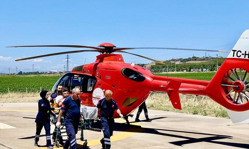 Diyarbakır'ın Lice ilçesinde yaşanan bir iş kazasında, sağ el bileği tendonu kesilen 46 yaşındaki Zeynel Buluttekin, ambulans helikopterle hastaneye ulaştırıldı.