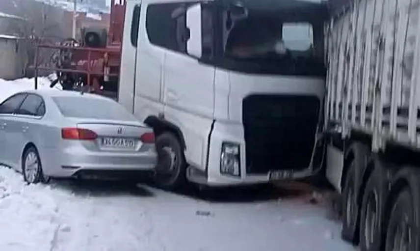Kaza, eski Mardin yolu üzerinde meydana geldi. Buzlanma nedeniyle sürücülerin direksiyon hakimiyetini kaybetmesi sonucu 3 tır ile 2 otomobil çarpıştı.