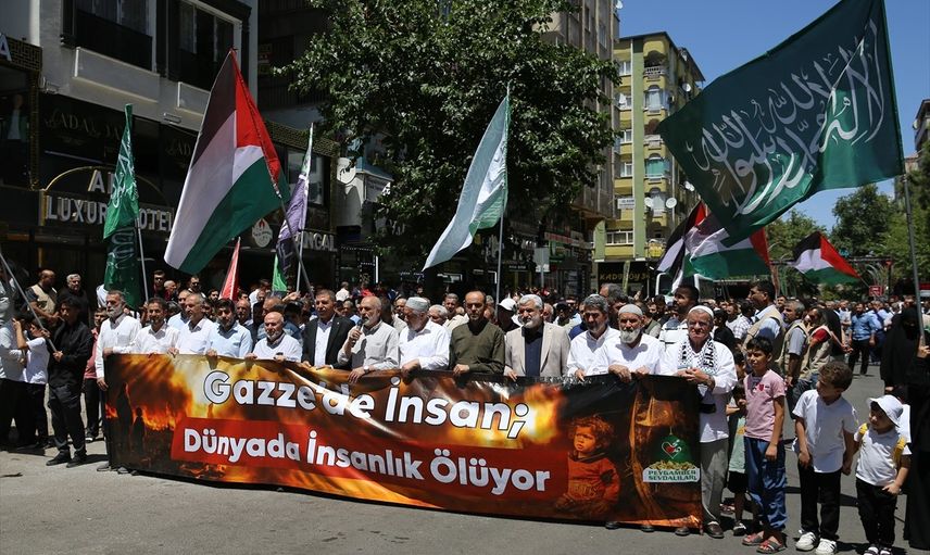 Katılımcılar, basın açıklaması sırasında sık sık tekbir getirerek duygularını ifade ettiler.